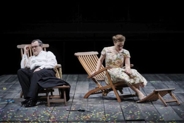 Das war aber auch kein Wunder, denn das, was heuer über die Bühne des Staatstheaters Braunschweig ging, war in großem Maße dazu geeignet, Begeisterung zu erregen. Schon die Inszenierung von Dirk Schmeding in dem Bühnenbild von Ralf Käselau und den Kostümen von Julia Rösler vermochte zu überzeugen. Dem Regieteam geht es nicht darum, ein möglichst reales Abbild von Auschwitz zu zeigen. Vielmehr thematisiert es unsere heutige Einstellung zu diesem überaus heiklen Kontext. Auschwitz auf der Bühne ist schon lange kein Tabuthema mehr. Das ist nicht zuletzt ein Verdienst der Passagierin. Schmeding verzichtet auf jegliche Aufzeigung von blanker Gewalt und gibt dem Ganzen mehr einen reflektierenden Anstrich. Jeder Form von Naturalismus erteilt er eine klare Absage und vermeidet es dabei gekonnt, in irgendwelche Formen von Rührseligkeit oder Sentimentalität abzugleiten. Ein äußerer Wechsel zwischen dem Ozeandampfer und Auschwitz findet in dieser Produktion nicht statt. Vielmehr verzahnen sich beide Ebenen in einem Einheitsbühnenbild miteinander. Das Ganze spielt sich auf dem Schiff ab, wobei die Auschwitz-Szenen geschickt in diesen äußeren Rahmen integriert werden. Offenkundig wird dabei, dass alle Passagiere Lasten der Vergangenheit mit sich herumschleppen, die irgendwann einmal radikal an die Oberfläche kommen.
