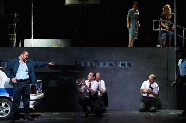 Dass es gerade dem „Propheten“ sehr zu wünschen ist, in Zukunft wieder häufig den Weg auf die Opernbühnen zu finden, liegt nicht zuletzt daran, dass er unglaublich zeitgemäß ist. In der Tat dürfte es nur wenige Werke des Musiktheaters geben, deren Handlung so stark modern anmutet wie es bei diesem Stück der Fall ist. Das Geschehen, das ursprünglich während des „Täuferreichs von Münster“ spielte, könnte sich genauso im Hier und Jetzt abspielen, ohne dass die Vorzeichen groß geändert werden müssten. Dieser Aktualität gilt auch das vornehmliche Interesse von Regisseur Tobias Kratzer, dem zusammen mit seinem Bühnen- und Kostümbildner Rainer Sellmaier ein wahrer Geniestreich gelungen ist. Weit entfernt von jeder vordergründigen platten Aktualisierung entwickelt er seine voll und ganz der Gegenwart verpflichtete Deutung gänzlich aus dem Stück heraus, ohne ihm Gewalt anzutun. Ihm kommt es nicht so sehr auf letztlich belanglose Äußerlichkeiten an, vielmehr legt er den Fokus auf eine prägnante Analyse des Subtextes und eine eindringliche Herausarbeitung des gesellschaftskritischen Potentials. Die Rechnung ist dann auch voll aufgegangen.