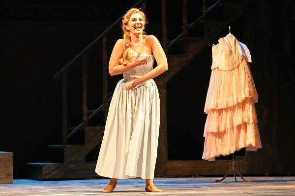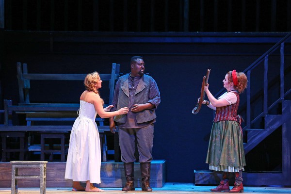 Und damit kommen wir zum eigentlichen Prunkstück dieser Aufführung, den Sängern der romantischen Oper. Und hier muss ich zugeben, dass man es viel besser als an diesem Spätnachmittag kaum machen kann. Ausnahmslos kommen nicht nur in den Hauptpartien exzellente Leistungen heraus, auch bis in die kleinsten Nebenrollen gibt es keinerlei Ausfälle, und dies ist heutzutage leider nicht mehr überall so. Als Agathe, die Tochter von Kuno, dem fürstlichen Erbförster, der von Cezary Rotkiewicz ohne Fehl und Tadel dargeboten wird, erlebt man Kammersängerin Iordanka Derilova. Und sie, die in Sofia geborene Ausnahmesängerin ist ein Urgestein aus Dessau. Seit 2003 ist sie eine der Stützen dieses Opernhauses und es ist bewundernswert, mit welcher Gleichmäßigkeit sie sich ihre stimmliche Brillanz über alle die Jahre erhalten konnte. Mit durchschlagskräftigem, kraftvollem und stimmschönem Sopran gestaltet sie diese Rolle bis in die letzte Phaser und kann darstellerisch aus dem reichen Schatz der Erfahrung schöpfen. Sie singt die Partie der Agathe nicht, nein sie gestaltet sie, schöpft sie bis auf den letzten Tropfen aus und bietet eine brillante überzeugende Leistung, Als ihr Geliebter Max agiert der aus Texas stammende und seit gut zwei Jahren in Dessau befindliche Tenor Ray M. Wade, jr..Er bewältigt die nicht gerade sehr leichte und von vielen Tenören gefürchtete Partie mit überzeugenden stimmlichen Mitteln. Sein warmer, geschmeidiger und hell timbrierter Tenor kann kraftvolles Forte mit leuchtenden Spitzentönen als auch ein gefühlvolles Zurücknehmen der Stimme für sich verbuchen. Gestalterisch ist er immer noch ein bisschen unbeweglich, was aber gerade bei der Figur des Jägerburschen nicht unbedingt von Nachteil ist.