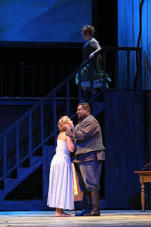 Und damit kommen wir zum eigentlichen Prunkstück dieser Aufführung, den Sängern der romantischen Oper. Und hier muss ich zugeben, dass man es viel besser als an diesem Spätnachmittag kaum machen kann. Ausnahmslos kommen nicht nur in den Hauptpartien exzellente Leistungen heraus, auch bis in die kleinsten Nebenrollen gibt es keinerlei Ausfälle, und dies ist heutzutage leider nicht mehr überall so. Als Agathe, die Tochter von Kuno, dem fürstlichen Erbförster, der von Cezary Rotkiewicz ohne Fehl und Tadel dargeboten wird, erlebt man Kammersängerin Iordanka Derilova. Und sie, die in Sofia geborene Ausnahmesängerin ist ein Urgestein aus Dessau. Seit 2003 ist sie eine der Stützen dieses Opernhauses und es ist bewundernswert, mit welcher Gleichmäßigkeit sie sich ihre stimmliche Brillanz über alle die Jahre erhalten konnte. Mit durchschlagskräftigem, kraftvollem und stimmschönem Sopran gestaltet sie diese Rolle bis in die letzte Phaser und kann darstellerisch aus dem reichen Schatz der Erfahrung schöpfen. Sie singt die Partie der Agathe nicht, nein sie gestaltet sie, schöpft sie bis auf den letzten Tropfen aus und bietet eine brillante überzeugende Leistung, Als ihr Geliebter Max agiert der aus Texas stammende und seit gut zwei Jahren in Dessau befindliche Tenor Ray M. Wade, jr..Er bewältigt die nicht gerade sehr leichte und von vielen Tenören gefürchtete Partie mit überzeugenden stimmlichen Mitteln. Sein warmer, geschmeidiger und hell timbrierter Tenor kann kraftvolles Forte mit leuchtenden Spitzentönen als auch ein gefühlvolles Zurücknehmen der Stimme für sich verbuchen. Gestalterisch ist er immer noch ein bisschen unbeweglich, was aber gerade bei der Figur des Jägerburschen nicht unbedingt von Nachteil ist.