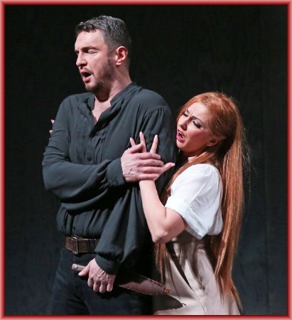 Neu in der Wiederaufnahme ist der aus Texas stammende Tenor Ray M. Wade jr., der den Manrico gibt. Am Anfang etwas zurückhaltend, steigert er sich im Verlauf der Oper immer mehr und kann auch gestalterisch punkten, wenngleich er da noch ein bisschen zulegen kann. Sein warmer, geschmeidiger und hell timbrierter Tenor weiß mit kraftvollem Forte und leuchtenden Spitzentönen, wie auch mit dem Zurücknehmen der Stimme für sich einzunehmen. Insgesamt stehen hier vier ausgezeichnete Vertreter ihrer Gattung auf der Bühne, eine der Hauptvoraussetzungen um „Il trovatore“ zu einem Erfolg werden zu lassen. Erfreulich ist auch, dass es bei den kleineren Partien keinen Ausfall gibt, dass alle sorgfältig ausgewählt worden sind und ihre Partien ausfüllen und damit zum Erfolg der Aufführung maßgeblich beitragen. Als Inez weiß sich Gerit Ada Hammer in Szene zu setzen, als Ferrando hat Dominic Barberi keine Probleme, als Ruiz und als Bote ist David Ameln an diesem Spätnachmittag auf der Bühne präsent und Cezary Rotkiewicz kann dem alten Zigeuner Gestalt verleihen.