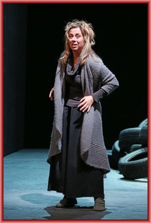 Der große Tenor Enrico Caruso hatte einmal erklärt, dass man für eine erfolgreiche Aufführung des „Troubadour“ nur die vier besten Sänger der Welt brauche. Und an dieser Aussage hat sich bis heute nichts geändert. Und Dessau kommt schon verdammt nahe an diese Aussage heran. Inszeniert wird die dramatische Mär von Rebecca Stanzel uns sie tut dies einfach und schnörkellos. Es wird nichts hineingedeutet, die blutige Geschichte wird stimmig erzählt. Ein eigentlich spartanisches, aber dennoch beeindruckendes Bühnenbild und zurückhaltende Kostüme werden von Markus Pysall beigesteuert. Die einzigen Requisiten sind eigentlich Autoreifen in allen Variationen, die eigentlich für alles dienen. Na gut, mein Geschmack ist es zwar nicht so, aber es stört nicht weiter – und das ist heutzutage schon viel. Alles ist nüchtern und zweckgebunden und lenkt daher das Auge (und das Ohr) des Betrachters auf das eigentlich ausschlaggebende, die Musik. Videoeinspielungen von Barbara Janotte sorgen für weitere Stimmung, meist düster und beeindruckend.