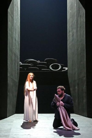 Markus Pysall s Kostüme weisen zwar in Ansätzen auf das Mittelalter, in dem die Vorlage spielt, auch wenn die Uniformen der Soldaten ein wenig an "Raumpatroullie Orion" erinnern – die Handlung wird aber in eine unbestimmte Zeit verortet. Sein Einheitsbühnenraum ist dunkel und wandelbar. Die Wände bewegen sich aufeinander zu, verkleinern den Raum, symbolisieren die gefühlsmäßige Enge, in der die Handelnden leben, und die Beschränkung, die sie dadurch erfahren, dass sie in ihren eigenen Gefühlen verhaftet sind. Unterstützt wird das Ganze äußerst stimmig von einer ausgefeilten Lichtregie, hier und da sorgen Videoeinspielungen von