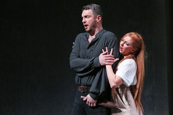 Den bringt der Italiener Leonardo Gramegna – übrigens einziger Gastsänger in dieser Produktion – zur Genüge mit, gibt den Minnesänger Manrico extrem gefühlvoll mit sicherer Höhe, doch mit zu wenig Glanz im Timbre und mitunter fast unbeholfen wirkendem Spiel. Letzterer Eindruck kann aber auch daran liegen, dass den beiden Herren zwei so außergewöhnliche Sängerdarstellerinnen gegenüber stehen. Jordanka Derilovas Sopran ist voller Kraft und sicher nicht ohne Härte. Doch spielt die Kammersängerin dermassen intensiv, bemüht Bruststimme, Portamento und Declamatio dermaßen gekonnt, ohne auf Schönklang zu achten, dass am Ende eine so beeindruckende wie bewegende Interpretation steht. Diese Art der Darstellung erinnert mich an Magda Olivero, deren Zauber man auf den Audioaufnahmen kaum nachvollziehen kann, weil das visuelle Live-Erlebnis fehlt, die aber von ihren Bewunderern wegen der intensiven Verkörperung ihrer Figuren fast wie eine Göttin verehrt wurde. Rita Kapfhammers farbenreicher Mezzo ist wie gemacht für die Zigeunerin Azucena. Er verfügt über eine bedrohliche Tiefe und an Wahn erinnernde Höhe, ihr gelingen bezaubernde, zu Tränen rührende Pianissimi und dank ihres intensiven Spiels auch das intensivste und überzeugendste Rollenportrait des Abends. Da versteht man, warum Verdi die Oper eigentlich „Azucena“ nennen wollte.