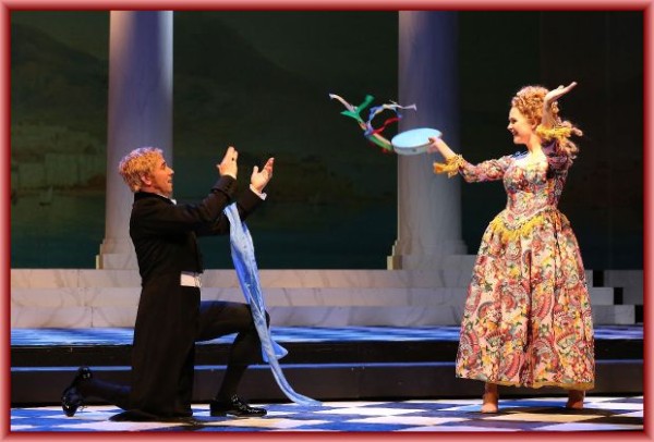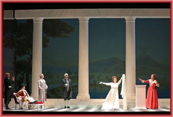 Unterhaltung und Operette war schon zu seinen Wuppertaler Zeiten "Chefsache" für Intendant Johannes Weigand, das er für das schwere "leichte Genre" ein Händchen besitzt und Operette ernst nimmt , weiß man daher. So lädt auf der großen Dessauer Bühne die Operette mit drei Stunden Spieldauer zu einem großen Abend ein. Die Geschichte Emma Hamiltons wird mit hervorragend gestalteten Dialogszenen voller Humor und dem nötigen Augenzwinkern vor den Zuschauern ausgebreitet, die weitgehend unbekannte Musik von der Anhaltischen Philharmonie Dessau unter Elisa Gogou schmissig serviert. Moritz Nitsches Bühnenbilder geben den Augen das nötige Futter, die englische Spelunke ist vielleicht etwas sauber, die englische Botschaft in Neapel besitzt den großen Schwung italienischer Sujets der Zeit, sehr schön das Zitat der Wörlitzer "Villa Hamilton", ganz bezaubernd die schlichte, effektvolle Lösung für die Szene auf dem Schiff Lord Nelsons. Judith Fischer entwarf dabei die weitgehend historischen farbenfrohen Kostüme oder passend zu Künnekes Musik den Schuss Zwanziger Jahre. Wie bereits geschrieben, weiß Regisseur Weigand die Figuren glaubhaft zu bewegen, ihnen den rechten Schuss "Operette" mitzugeben, der den Abend nie langweilig werden läßt. Einzig die Choreographie von Joe Monaghan wirkt etwas einfallslos und lkönnte mehr Schwung gebrauchen. Schön wäre es auch die Gesangstexte als Obertitel einzublenden, da das gesungene Wort bei den durchaus witzigen Texten nicht immer verständlich ist.
