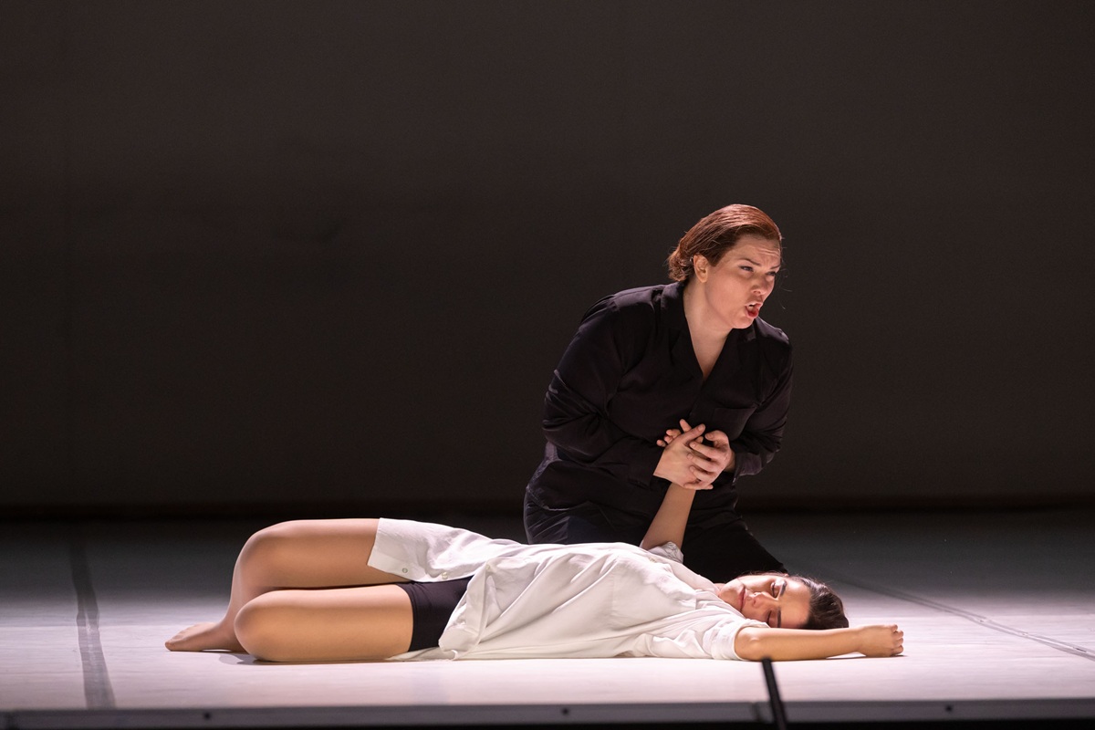 Das Regieteam wollte vor allem mit einer Tanzperformance als seinem spezifisch künstlerischen Code den Mythos hinter der Geschichte von Orpheus und Eurydike, der großen Liebe und ihres Verlustes nahekommen. Man setzte dazu auf Bewegung als einem wesentlichen Narrativ der Interpretation sowohl im Hinblick auf die szenischen wie auf die körperlichen Dimensionen. Damit spielte also der Tanz – mit dem kommentierenden Chor meist im Hintergrund – die entscheidende Rolle in der Inszenierung und konnte durchaus nicht immer überzeugend, vor allem die dramatischen Momente des Stücks, wie beispielsweise den Auftritt der Furien, adäquat und mitnehmend abbilden. So blieb doch szenisch und auch dramaturgisch allzu viel im Ungefähren und nahm der Oper, die sie letzten Endes trotz aller Lichtbild-Aufführungen immer noch ist, viel von ihrer dramatischen Kraft. Da konnten auch die Kostüme von Lluc Castells und das im weißen Umfeld wenig variierende Licht von Luis Martí keine großen Akzente setzen. Im Finale, wenn es den Lobgesang auf die Liebe gibt, waren die Videos doch passender.