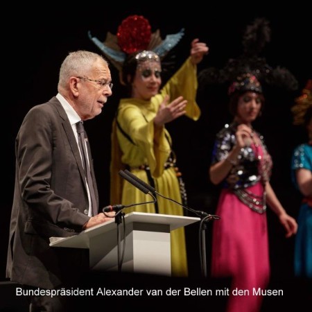 Nun – die Redner hatten sich geduldig und charmant den Anweisungen und Einwürfen der vom Parnass (hoch oben im Publikum) auf die Bühne herabgestiegenen Musen gefügt. Ein Meister im geistvollen Plaudern – verbunden mit klugen Worten zur Bedeutung der Kunst – ist der vom Publikum herzlich akklamierte Bundespräsident Alexander van der Bellen.