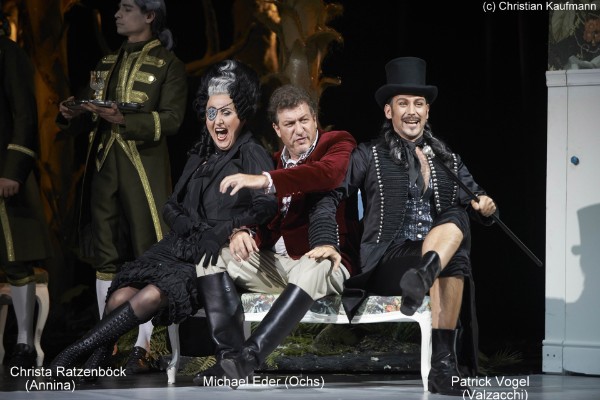 Der in Dresden engagierte Wiener Michael Eder ist ein erfahrener und überzeugender Ochs, der glaubhaft Adel mit Derbheit verbindet. Zu Beginn wirkte die Stimme noch etwas rau – dann aber steigerte er sich zu einer großartigen Leistung mit der notwendigen saftigen Tiefe und sicheren Höhen. Eine kleine Anmerkung zur an sich exzellenten Textprägnanz: Hofmannsthal schreibt immer „Mädel“ – die derbere Variante „Madel“ passt nicht ganz zum Baron aus altem Adel – und derartige Stellen gab es einige Male…..