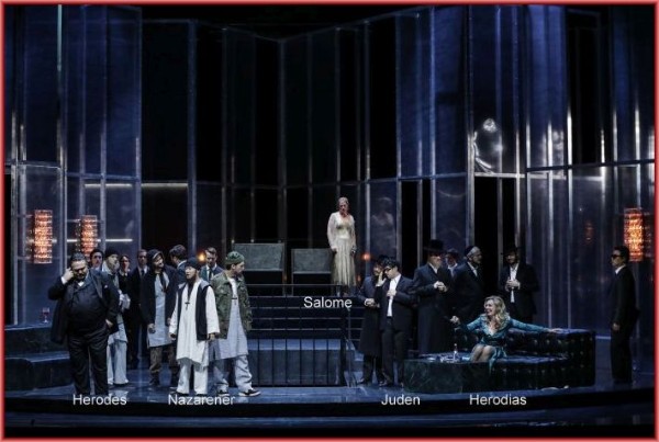 Ausgezeichnet gelang es Ursula Hesse von den Steinen die Figur der Herodias zu zeichnen. Auch sie ist eine bereits an ersten Häusern erprobte Wagner-Interpretin (Fricka, Venus und Ortrud). Durch die ausgezeichnete Maske und ihr intensives Spiel war sie geradezu eine frappant ihrer Tochter ähnlich sehende Figur, die am Ende die Handlung zum letalen Ende hintreibt. Der schmachtende Narraboth war der etwas schmalstimmige Mathias Frey. Auffallend plastisch gestaltet war das Judenquintett, die beiden Soldaten hatten das nötige stimmliche Gewicht ebenso wie die beiden Nazarener und auch der Page, der in dieser Inszenierung am Ende Salome erschießt, stimmlich und darstellerisch adäquat besetzt. Die Namen der umfangreichen Besetzungsliste können hier nachgelesen werden.