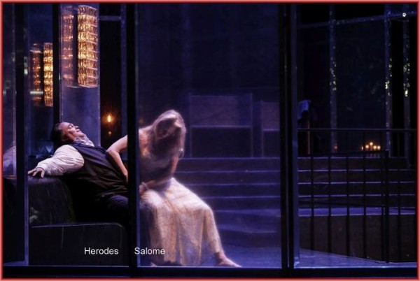 Die beiden szenisch und musikalisch dominanten Figuren des Abends waren Salome und Herodes. Die Münchnerin Anna Gabler – inzwischen schon längst international geschätzte Wagner-Interpretin (hier in Video-Ausschnitten als Eva 2011 in Glyndebourne und 2013 bei den Osterfestspielen in Salzburg ) lieferte ein überzeugendes Rollenportrait der Prinzessin Salome. Wirkte für mich zu Beginn ihr kindliches Gebaren gegenüber Narraboth noch etwas künstlich-aufgesetzt, so steigerte sie sich in der Begegnung mit Jochanaan zu einer überaus intensiven Gestaltung in verbohrtem Trotz. Stimmlich gelang es ihr hervorragend die Lyrismen der Partie zart zu gestalten, aber auch die großen Ausbrüche und Spitzentöne kraftvoll zu bewältigen. Das war zweifellos eine große Leistung! Ganz großartig war auch der Herodes des aus dem lyrischen Fach kommenden Jörg Schneider . Mit exzellenter, aber nie manierierter Wortdeutlichkeit sang er die heikle Partie ausgezeichnet und stattete auch die Spitzentöne mit dem nötigen heldischen Glanz aus. Dazu kam eine ausgeprägte Spielbegabung. Ein Kabinettstück der Gestaltungskraft und der Personenführung war der Schleiertanz, der geradezu zu einem bedrückenden Pas de deux der verführerischen Prinzessin mit ihrem lüsternen Stiefvater wurde.