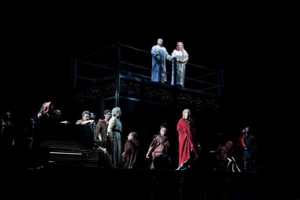 Es ist bereits ein kleines Wunder, dass das Theater Regensburg den „Tristan“ szenisch realisiert. Das letzte Mal kam das Werk im schönen Haus am Bismarckplatz vor 62 Jahren auf die Bühne; ansonsten kreiste man hier in den vergangenen Jahrzehnten um die Trilogie von Holländer, Tannhäuser und Lohengrin. Zugegeben: es sind keine „Gesangsstars“, die die Hauptrollen singen, aber sie überraschen durch Klarheit und/oder Durchhaltevermögen, was bekanntlich angesichts des 3. Akts dringend nötig ist. Einhellig bejubelt wurde Dara Hobbs als Isolde – denn ihre Stimme überrascht durch Klarheit und Ausdruckskraft, Innigkeit und dramatischer Energie, ohne je ins Forcieren zu geraten.