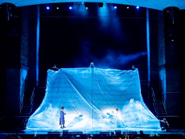 Vor gut vier Jahren schrieben wir hier beim Opernfreund nach dem Besuch der Try-Out-Vorstellung des neuen Musicals „Goethe!“ an der Folkwang Universität der Künste: „Es bleibt zu hoffen, dass diese Aufführung ein weiterer Schritt war, das Werk entsprechend weiterzuentwickeln, denn hier könnte in Essen ein ganz großer Musicalhit das Licht der Welt erblickt haben. Potential für große Bühnen ist hier zweifelsfrei gegeben.“ Nun sollte diese Hoffnung ihre Erfüllung finden, denn Anfang Juli 2021 fand die Uraufführung des Werkes im Rahmen der 70. Bad Hersfelder Festspiele statt. Eigentlich sollte das Musial bereits im Vorjahr auf die Bühne der Stiftsruine kommen, allerdings mussten die Festspiele im Jahr 2020 aus den bekannten Gründen abgesagt werden. Das Stück basiert auf dem erfolgreichen Kinofilm über die Jugendjahre des großen deutschen Dichters aus dem Jahre 2010 und erzählt die Geschichte von Johann Wolfgang Goethe, der von seinem Vater zum Studium der Rechtswissenschaften nach Wetzlar geschickt wird und sich dort in die junge Charlotte Buff verliebt. Hierbei steht ihm allerdings sein Vorgesetzter Kestner im Wege, der ebenfalls ein Auge auf Lotte geworfen hat und auch vor einer üblen Intrige nicht zurückschreckt, um seinen Nebenbuhler loszuwerden. Die unglückliche Liebesgeschichte, sowie den Freitod seines Freundes Wilhelm Jerusalem verarbeitet Goethe schließlich in „Die Leiden des jungen Werthers“. Hierbei mischt das Musical geschickt historische Fakten, Auszüge aus besagtem Briefroman und reine Fiktion zu einem kurzweiligen Abend, der unterhält und den Zuschauer gleichzeitig mitnimmt auf eine Reise in Goethes Jugendjahre. Diese ist historisch betrachtet sicherlich nicht immer ganz korrekt, aber wie heißt es im Werk so schön auf die Frage des Verlegers, ob das Werther-Manuskript tatsächlich der Wahrheit entspräche: „Es ist mehr als Wahrheit, es ist Dichtung.“