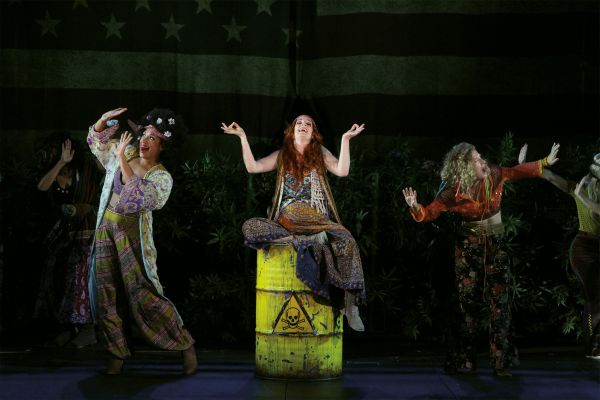 Für Mehmert bleibt Hair aber in erster Linie „ein großer Trip im Rausch des Lebens“, so dass er die Handlung bis auf einige wenige unabdingbare Grundzüge streicht und sich mehr auf das Grundwerk von 1968 bezieht. Gefeiert wird in Bad Hersfeld eine Art Konzert-Happening als Hommage an eine Generation, die für einen Sommer die Zeit angehalten hat. Leider bleibt hierbei die Personenführung komplett auf der Strecke. An sich sind alle Rollen beliebig und austauschbar. Die Entwicklung die Claude im Kampf zwischen Pflichtgefühl und Elternhaus auf der einen Seite und pazifistische Überzeugung und Hippie-Freunde auf der anderen Seite durchmacht ist kaum noch vorhanden. Von irgendwelchen besonderen Beziehungen innerhalb der Gruppe ganz zu schweigen. Leider geht bei solch einem Inszenierungsansatz dann gleichzeitig viel vom Stück und den darin enthaltenen Botschaften verloren. Keine Frage, Mehmert liefert im zweiten Akt ins Mark gehende Kriegsszenen, dies ist dann zum Finale auch genau der Moment wo man traurig feststellt, welches Potential auch heute noch in diesem Werk steckt, vielleicht sogar mehr denn je. Genutzt wurde dieses Potential hier leider nur in Ansätzen.