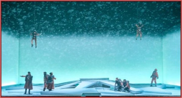 Den größten Eindruck hinterließ der Walkürenritt. Der dritte Aufzug, in dem die Zeit stillsteht, spielt in einer aus mannigfaltigen weißen Platten bestehenden Eis- und Schneelandschaft, die an Caspar David Friedrichs Gemälde „Die verlorene Hoffnung“ gemahnt. Die Jagdfliegerstaffel der in signalfarbenes Orange gekleideten Walküren springt vor der Kulisse des Paramount-Berges mit Fallschirmen ab. Später trennt Wotan mit seinem Speer die Eisplatten, um auf diese Weise eine Öffnung zu erzeugen, in der Brünnhilde schließlich einschlafend versinkt. Kurze Zeit später taucht sie in einen Eisblock eingeschlossen wieder auf. Siegfried wird im dritten Teil der Tetralogie viel Energie aufwenden müssen, um diesen zum Schmelzen zu bringen. Ob ihm das gelingen wird? Da im „Siegfried“ aber ein anderer Regisseur am Werk sein wird, wird diese interessante Frage wohl nicht beantwortet werden.