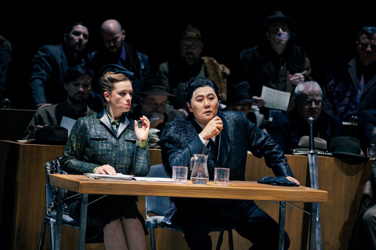 Diese vorzügliche Sängerin sei Bayreuth stark ans Herz gelegt! Neben ihr gefiel in der Rolle des Telramund Kihun Yoon mit ebenfalls vorbildlich fundiertem, sonorem und ausdrucksstarkem Bariton. Einen voll und rund klingenden Bass brachte Ks. Konstantin Gorny in die Partie des König Heinrich ein, dessen hohe Tessitura ihm nicht die geringsten Schwierigkeiten bereitete. Ein markant singender Heerrufer war Ks. Tomohiro Takada. In den Rollen der vier brabantischen Edlen waren solide Ks. Klaus Schneider, Alejandro Aparicio, Lorenzo de Cunzo und Don Lee zu erleben. Mächtig legte sich der von Ulrich Wagner einstudierte Staatsopernchor und Extrachor ins Zeug.