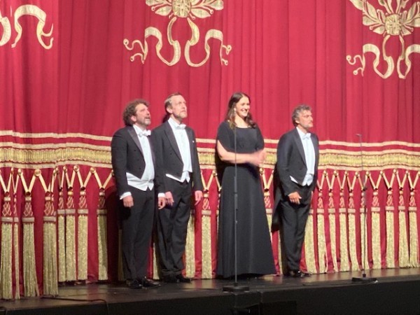 Der Vorhang war schon zu, und alle dachten, das war’s. Dann ging er nochmal auf! Keiner hatte bis dahin des Saal verlassen. Die vier hatten noch drei Zugabe-Zuckerl parat, mit Asher Fisch am blitzschnell herbeigezauberten Steinway & Sons. Zuerst gab Jonas Kaufman mit viel Feingefühl das Wesendonck-Lied „Träume“. Lise Davidsen folgte mit einem mir leider unbekannten Lied, und Georg Zeppenfeld sang aus der „Schweigsamen Frau“ von Richard Strauss „Wie schön ist doch die Musik…“, eine Arie, mit der sich Kurt Moll hier in München unvergesslich machte. Das Publikum war begeistert. Immer wieder gab es das Trampeln wie in Bayreuth, wo es wegen des hohlen Bodens aber intensiver klingt. Fast alle waren bis zum letzten Vorhang im Saal und dankbar, bei diesem Erlebnis dabei gewesen zu sein. Wie schön doch, dass sich die Oper nicht digitalisieren lässt!