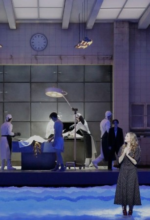 Wer ein die Herzen wärmendes, poetisches Weihnachtsmärchen erwartet hat, wird von dieser Snow Queen, der Schneekönigin, sicher enttäuscht sein. Ebenso, wer eine psychoanalytisch tiefschürfende Interpretation des Stoffes nach dem Kunstmärchen von Hans Christian Andersen erwartet hat. Regisseur Andreas Kriegenburg entzaubert das Märchen indem er es in der geschlossenen psychiatrischen Abteilung eines ziemlich heruntergekommenen Krankenhauses spielen lässt. Sein zentraler Gedanke: Die Heilung eines schwer psychisch kranken Mannes – Kay – durch die Liebe einer Frau. „Wir sehen an diesem Abend die Geschichte einer Frau, die ihr eigenes Leben für ihren Partner opfert. Die ihn tagtäglich besucht, obwohl er nicht mehr reagiert. Wir sehen die Unbedingtheit ihrer Liebe. Und am Ende sehen wir auch, dass dieses Beispiel auch auf andere abfärbt.“ Den Topos von der aufopferungsvollen Frau kennt man aus Opern des 19. Jahrhunderts zur Genüge – Gilda, Liu, Brünnhilde, um nur drei zu nennen. Dass dies nun zum zentralen Gedanken einer Oper des 21. Jahrhunderts wird, verwundert doch etwas.