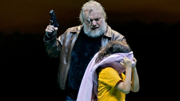 Man merkt deutlich, dass Alberich ihn ganz nach seinem Gutdünken erzogen hat. Sofern man hier von einer Erziehung, noch dazu einer guten, überhaupt noch sprechen kann. Eher nicht. Der kleine Mann ist ganz schön gewalttätig. Mime fungiert als Erzieher. Das Gold, mit dem Freia später ausgelöst wird, besteht aus einem jungen Mädchen, das von der aus der Familie ausgestoßenen, die wahren Umstände klar erkennenden Erda zum Schluss mit sich genommen wird. Hier handelt es sich wohl um eine der Nornen. Diese Personalisierungen von Ring und Gold machen durchaus Sinn. Kinder sind schließlich unserer aller Hoffnung. Und Hoffnung ist die Voraussetzung für eine gute Zukunft. Und genau um diese beiden Aspekte geht es in dieser Inszenierung.