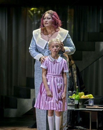 Man merkt deutlich, dass Alberich ihn ganz nach seinem Gutdünken erzogen hat. Sofern man hier von einer Erziehung, noch dazu einer guten, überhaupt noch sprechen kann. Eher nicht. Der kleine Mann ist ganz schön gewalttätig. Mime fungiert als Erzieher. Das Gold, mit dem Freia später ausgelöst wird, besteht aus einem jungen Mädchen, das von der aus der Familie ausgestoßenen, die wahren Umstände klar erkennenden Erda zum Schluss mit sich genommen wird. Hier handelt es sich wohl um eine der Nornen. Diese Personalisierungen von Ring und Gold machen durchaus Sinn. Kinder sind schließlich unserer aller Hoffnung. Und Hoffnung ist die Voraussetzung für eine gute Zukunft. Und genau um diese beiden Aspekte geht es in dieser Inszenierung.