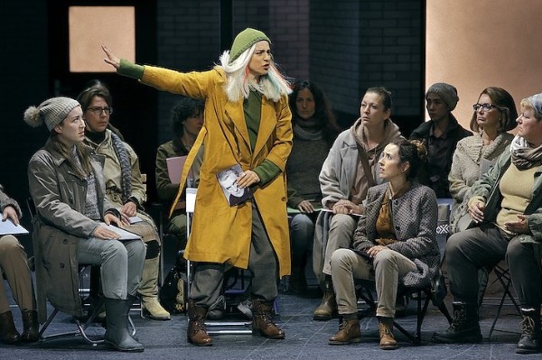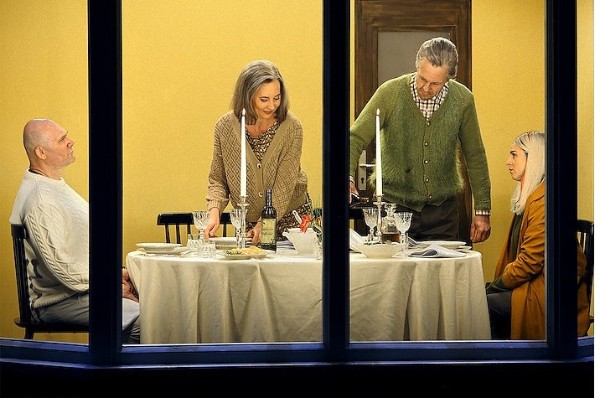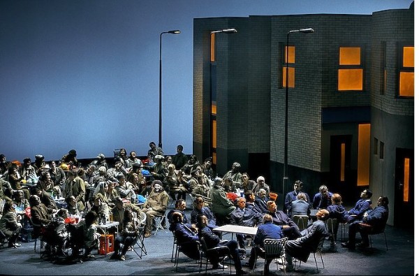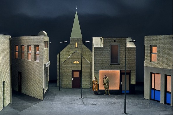 Auch im 2. Akt darf nichts so sein, wie es sein sollte oder wenigstens könnte. Nachdem ein paar Häuser des biederen Sandviker Zentrums mit Kirche (bewegliches Einheitsbühnenbild ebenfalls Dmitri Tscherniakov) etwas verschoben worden sind, setzen sich die Mädchen auf stoffbespannten Campingstühlen mit Notenbüchern um Mary herum und singen unter ihrer Anleitung ihr berühmtes Lied. Nun kommt allerdings die starke Phase der Senta, die Tscherniakov in der Tat beeindruckend als revoltierendes Mädchen darstellt, das von der Idee des Holländers besessen ist und sich eigentlich auch immer wieder emanzipatorisch gibt, obwohl das wiederum mit den dramaturgisch vorgegebenen Unterwerfungsgesten gegenüber dem Holländer unvereinbar erscheint. Wir erleben ein kleinbürgerliches Abendessen des alternden Pärchens Daland und Mary mit dem Holländer und Senta in einer Art Wintergarten. Es wird Suppe gereicht bei Kerzenschein! Im Laufe des Essens wird allein Mary klar, dass das nicht gut ausgehen kann. Sie wird den Holländer am Ende mit der Flinte erschießen, nachdem der zuvor schon mit seiner Pistole die norwegischen Matrosen vertrieben hat. Und da offenbart sich dann Senta mit einem ekstatischen Gelächter. Es war wohl auch für sie von Anfang an eine Null-Nummer, aber das konnte man bei der Ballade und den intensiven Szenen mit Erik vorher noch nicht wissen…
