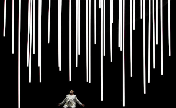 Schwabs Langzeitpartner Piero Vinciguerra, ein Spezialist für große, zugleich reale wie hintersinnige Architekturen, hat einen von Nicol Hungsberg ausgeleuchteten Bühnenraum gebaut, in dem Wagners Kunst der feinsten Übergänge (das Programmheft zitiert den berühmten Brief an Mathilde Wesendonk, in dem der Komponist seine musikalische Technik erläuterte) zum bewegten Bild wird. Die Tatsache, dass sich Tristan und Isolde aus dem Wüten des lichten Tages in das „Wunderreich der Nacht“ zurückziehen wollen, wird fantasmagorisch gespiegelt, die Wolken des weißblauen Himmels, unter dem im Jahre 1865 das Werk uraufgeführt wurde, ziehen ruhig über den Himmel, der durch eine riesige Öffnung sichtbar wird. Die LED-Fläche im unteren Geschoss zeigt Wasser, das sich blutig einfärbt, wenn Isolde ihre Geschichte erzählt, die Wolken werden unten in ein sinistres Schwarzweiß getaucht, bevor Tristan und Isolde sich zu den letzten Takten des ersten Aufzugs über einem immer wilder werdenden Strudel zu retten und zu berühren versuchen. Der sich bewegende Sternenhimmel des zweiten Aufzugs (als säßen wir in einem Raumschiff, aber Oper, und gerade diese, ist ja nie realistisch) findet unten seine Entsprechung. Tristan agiert fast zuletzt auf einem grellen Lichtboden, zwischendurch steht er auf einem schwarzen, von Weiß umgebenden Kreis. Das alles ist einfach gedacht und zugleich beeindruckend gemacht; der Symbolismus, dem dieses Wagner-Werk besonders verhaftet ist, bietet zugleich einen Spielraum, in dem das Licht und die Dunkelheit eine Hauptrolle spielen: bedeutend poetischer als in Christoph Marthalers Inszenierung, die mit ihren flackernden Lichtringen den Theaterabend und Bühnenraum veröden ließ, auch besser als in Katharina Wagners Aufführung, in der der zweite Akt in das dramaturgisch unsinnige Blendlicht der Tagesgespenster getaucht und am Ende eine ermüdende Reihe von Lichträumen mit falschen Isolden gezeigt wurde. Schwab lässt, das mag auch an den Produktionsbedingungen gelegen haben, den Tristan in einem Einheitsbühnenbild spielen, aber es wird von Akt zu Akt verändert. Friedrich Dieckmann, einer der klügsten Bayreuth-Beobachter der letzten Jahrzehnte, sprach einst vom Fluch des Einheitsbühnenbilds, manchmal aber gelingt es.