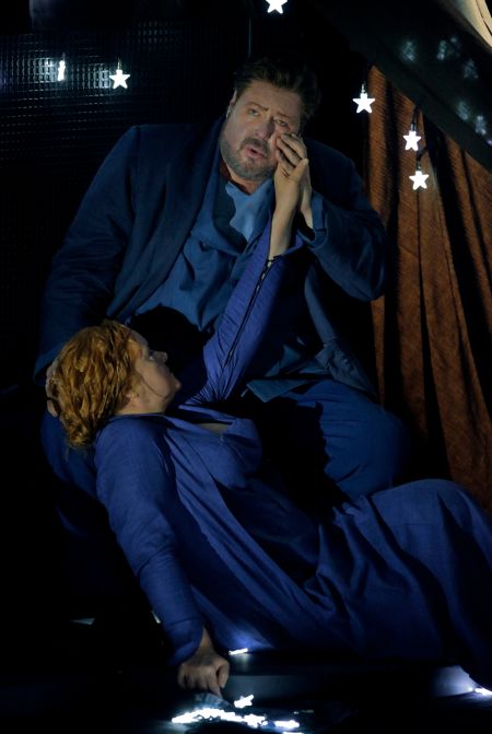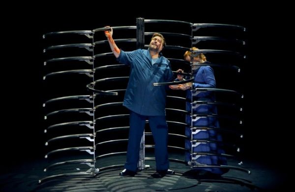 Düster-melancholisch ragen sich ineinanderschlingende Treppengänge empor. Ein Minimalismus, der an den zwangsnüchternen Bauhausstil der 1920er Jahre erinnert und so gar nichts Erlösendes hat. Als Dreingabe bewegt sich diese in sich verhakte Konstruktion auch noch wie ein schwankendes Schiff – so abgründig, melancholisch und unsicher wie das Schicksal der handelnden Personen. Isolde wie Tristan sind, wie man weiß, eigentlich als tragische Helden in einer Welt gedacht, die von Beginn an gegen ihre Liebe steht. Sie wollen vernünftig handeln und taumeln doch ihrem unendlich starken Gefühl nach. Diese Problematik im frühmittelalterlichen Stoff lässt die Regisseurin allerdings eher links liegen. Sie ernennt die ihrem Gatten Marke (gereifter, vielschichtiger Bass: René Pape) untreue Isolde lieber zu einer toughen Vorkämpferin des Feminismus. So entscheidet diese sich ganz bewusst dafür, ihrem Gatten König Marke untreu zu werden. Und für eine mehr als unsichere Zukunft mit dem coolen Ritter Tristan, der für Abenteuer und Aufbruch steht. Von großen Gefühlen ist nicht nur das Bühnenbild meist meilenweit entfernt. Gefühlsduselei, schwülstiges Herzbeben: Fehlanzeige. Wie um ihrer unsicheren Existenz mehr Halt zu verleihen, klammern sich die Protagonisten am kalten Treppengeländer fest.