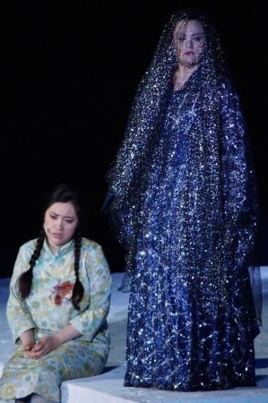 Musiktheater gibt es natürlich auch, da sind die kommentierenden Handlungsträger Ping, Pang und Pong trefflich angelegt. Und sporadisch bricht auch mal eine überraschend auftretende Schickimicki-Party-Gesellschaft die sonst oft etwas statisch wirkende Atmosphäre auf.