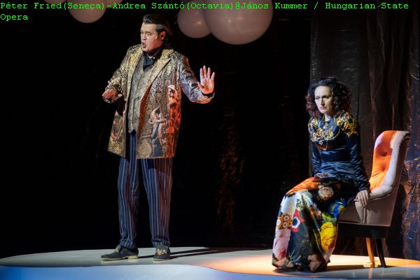 Krisztián Cser verkörperte diesen mit schauspielerischer Verve und wohligem Bass. Eszter Zemlényi gefiel als Drusilla, die den untreuen Ottone verzweifelt liebt, der seinerseits jedoch Octavia wie auch Poppea nachstellt, mit gut geführtem Sopran. Hausbassist Péter Fried war ein würdiger Philosoph Seneca und Erzieher Neros, der seinen Selbstmord anordnet und ihm Drogen übermitteln lässt. Weshalb dieser mit seinen Händen Tai-Chi-Bewegungen ausüben muss, lässt sich freilich nicht nachvollziehen. Sterbend wir er in eine Badewanne gelegt mit einem schwarzen Tuch bedeckt und mit dampfender Säure übergossen. Sopran Mária Farkasréti gefiel in der komischen Rolle der Nutrice, der Amme Octavias. Ein Wiedersehen gab es auch mit Mezzosopran Bernadett Wiedemann in der Rolle von Poppeas Vertrauter Arnalta, die mit ihrer Gestaltungskraft jeden ihrer Auftritte zum Erlebnis werden ließ. Die drei Allegorien wurden von Countertenor Zoltán Daragó als Amore, Sopran Diána Kiss als Fortuna und Mezzosopran Andrea Brassói-Jőrös als Virtu anmutig gespielt und dynamisch und mit Impetus gesungen. Die Musikstudenten Attila Varga-Tóth und Lőrinc Kósa durften ihren Tenor bzw Bariton noch als Hauptmann Liberto und als Gerichtsdiener Littore vorführen. In der kleinen Rolle des Lucano war noch Tenor Gergely Dargó zu erleben. In dieser Fassung wurden die Rollen des Pagen Valletto, des Hoffräuleins Damigella, sowie der Götter Pallas Athene. Merkur und Venus gestrichen. Ebenso wurde auf die zwei Tribunen, zwei Konsuln, zwei Soldaten und Senecas Angehörige verzichtet.