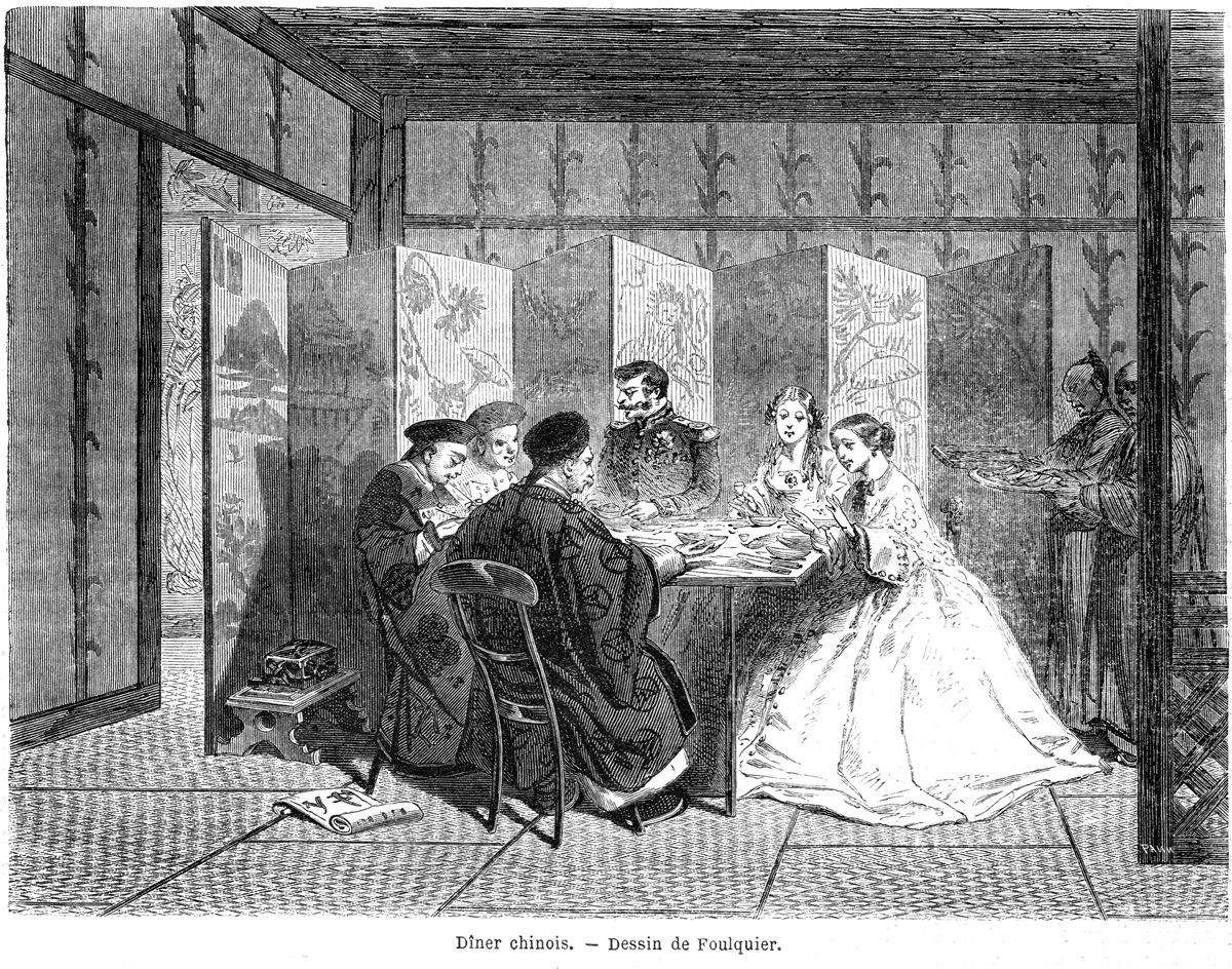 «Dîner chinois» in Le Tour du Monde (1863) – so stellte man sich nachträglich ihre Reise an die chinesische Grenze vor. Die Wirklichkeit war ganz anders…