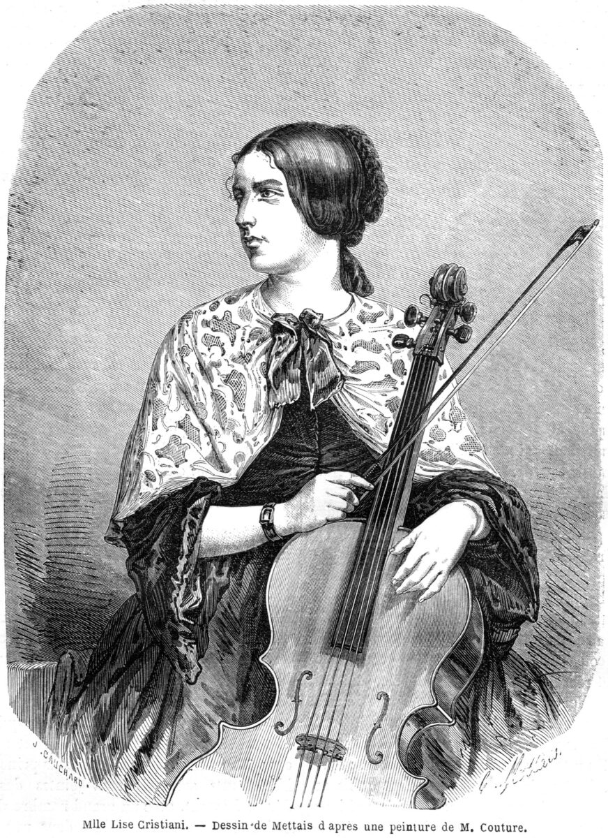 Lise Cristiani (1825–1853) ging in die Geschichte ein als erste Frau, die sich den Konventionen ihrer Zeit widersetzte, indem sie 1844/5 in Paris mit einem Cello auf ein Konzertpodium stieg. Sie schimmerte wie eine Sternschnuppe, faszinierte zwei Jahre lang ihre Zeitgenossen und geriet dann ebenso schnell wieder in Vergessenheit. Lise war geheimnisvoll, groß, schlank und von einer „römischer Schönheit“, wie Corinne, die Heldin des gleichnamigen Romans von Madame de Staël, mit der sie oft verglichen wurde. Als elegante Pariserin wusste sie ihr langes schwarzes Haar zu bändigen mit einer mit Rosen verzierten Samtkopfbedeckung, die man „des Christiani” nannte. Sie besaß Charme, Bildung und sehr viel Esprit. Ihre Briefe zeugen davon, und ihre brillante Konversation war angeblich „wie ein Feuerwerk“. Ohne sich um Konventionen zu kümmern, sprach sie im gleichen Ton mit einem König, einer Königin oder einem Prinzen wie mit Arbeitern, Strafgefangenen oder Bauern. Sie war nicht nur eine herausragende Musikerin, sondern eine für ihre Zeit außergewöhnliche Frau.