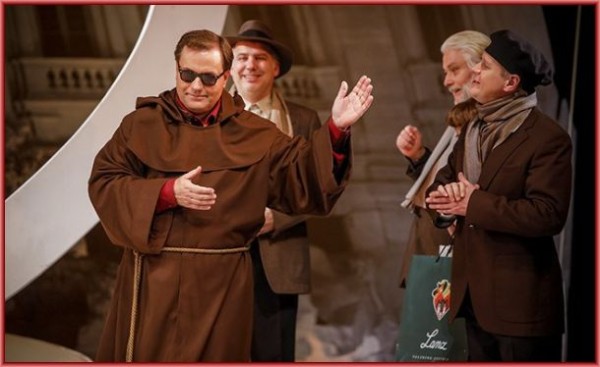 Der Wiener Tenor Sebastian Reinthaller, seit 2014 Künstlerischer Leiter der Bühne Baden, brillierte als Maler Arthur Bryk vor allem durch seine kräftige Stimme und seine starke Bühnenpräsenz. Mit viel Humor stattete er seine Rolle in der Szene als verkleideter Kapuzinermönch aus. Mit Sinn für subtile Komik agierten auch der britische Tenor Stephen Chaundy und die in Krems geborene Sopranistin Barbara Payha als Graf und Gräfin Falconi, die ihren Ehestreit auf köstliche Art und Weise zelebrierten. Er gipfelte darin, dass der gehörnte und ewig eifersüchtige Ehemann seine leicht verführbare Gattin in ein Kloster zu sperren beabsichtigt. Gesanglich bot vor allem Barbara Payha mit ihren Koloraturen eine exzellente Leistung.