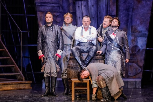 Jochen Schmeckenberger. Er, der alles inszeniert, weil er ja einen (kleinen) Kuss auf die Schulter der schönen Laura mit einem Schlag mit deren Fächer ertragen muss. Der in Hockenheim geborene Schmeckenberger wird vor Beginn der Vorstellung durch den Intendanten Michael Lakner entschuldigt. Er habe eine Kehlkopfentzündung, aber trotzdem – um die Vorstellung zu retten – zugesagt dennoch aufzutreten. Und dann singt dieser Kranke so, als wenn ihm nichts, aber auch gar nichts fehlen würde. Er liefert seine Partie bravourös ab, mit mächtigem (Bass) Bariton, stimmgewaltig, stimmschön und furchteinflößend verkörpert er die Rolle des intriganten Aufschneiders. Es ist eine Freude ihm zuzusehen und zuzuhören und man fragt sich wirklich, wie die Leistung ausschauen würde, wenn er keine stimmlichen Einschränkungen hat. Viel Beifall für eine tolle Leistung.