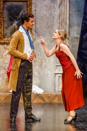 Den Studenten Symon Rymanowicz, den Bettelstudenten, gibt Matjaz Stopinsek mit schmelzendem, höhensicherem und durchschlagskräftigem Tenor, alles mit Feuer und Strahlkraft der Spitzentöne. Es macht einfach Spaß ihm zuzuhören, aber auch zuzuschauen. In jeder Sekunde merkt man ihm den Spaß und die Freunde an dieser Partie an und es überträgt sich auf das Publikum und dieses dankt ihm mit langem anhaltenden und hochverdienten Beifall. Seine bezaubernde Laura ist an diesem Abend Regina Riel , die österreichische Sopranistin, die in den letzten Jahren die Operettendiva von Bad Ischl war und diesen Erfolg in Baden nahtlos fortsetzt. Mit klarem, reinem in jeder Lage wunderschön ansprechendem Sopran. So macht Operette einfach nur Spaß – und so soll es auch sein. Ricardo Frenzel Baudisch gibt den zweiten Studenten Jan Janicki, der in Wirklichkeit Herzog Adam ist. Hochgewachsen und schlank und so ist auch sein sehr angenehmer Tenor, den er mit viel Eleganz und Charme einsetzt und dies auch im Duett mit „seiner“ geliebten Bronsilava, der zweiten Tochter der Gräfin Nowalska. Bronsilava wird von der jungen zarten Sopranistin Ilia Staple verkörpert. Mit hellem, klarem und warmem Sopran bezaubert sie nicht nur den Studenten, auch das Publikum, welches sie auch mit einer ausgesprochenen Spielfreude verwöhnt. Die Gräfin Nowalska wird völlig rollendeckend von Sylvia Rieser verkörpert, die auf jeden Fall auch das Mitleid des mitgehenden Publikums auf ihrer Seite hat, denn das Wohl ihrer Töchter liegt ihr mehr als gewaltig auf der Seele. Dann kommt die Verkörperung des Oberst Ollendorf durch