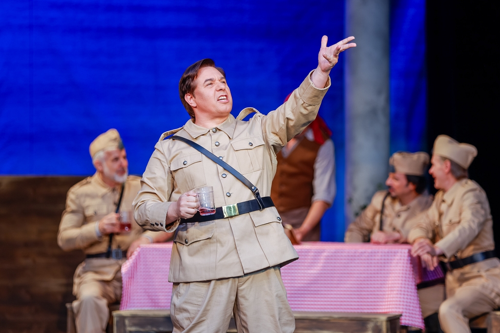 Einen tollen Auftritt legt auch der in Genua geborene Bariton Marco Di Sapia als intriganter Prinz Sergius hin. Darstellerisch kann er ausdruckstark, den ergebnislos Liebenden, abgewiesenen und düpierten und sich dann rächenden Edelmann dem Publikum nahebringen. Schade, dass er mit seinem samtigen, schönen Bariton kaum etwas zu singen hat, ihn möchte man hier gerne auch einmal in einer größeren Rolle hören.
