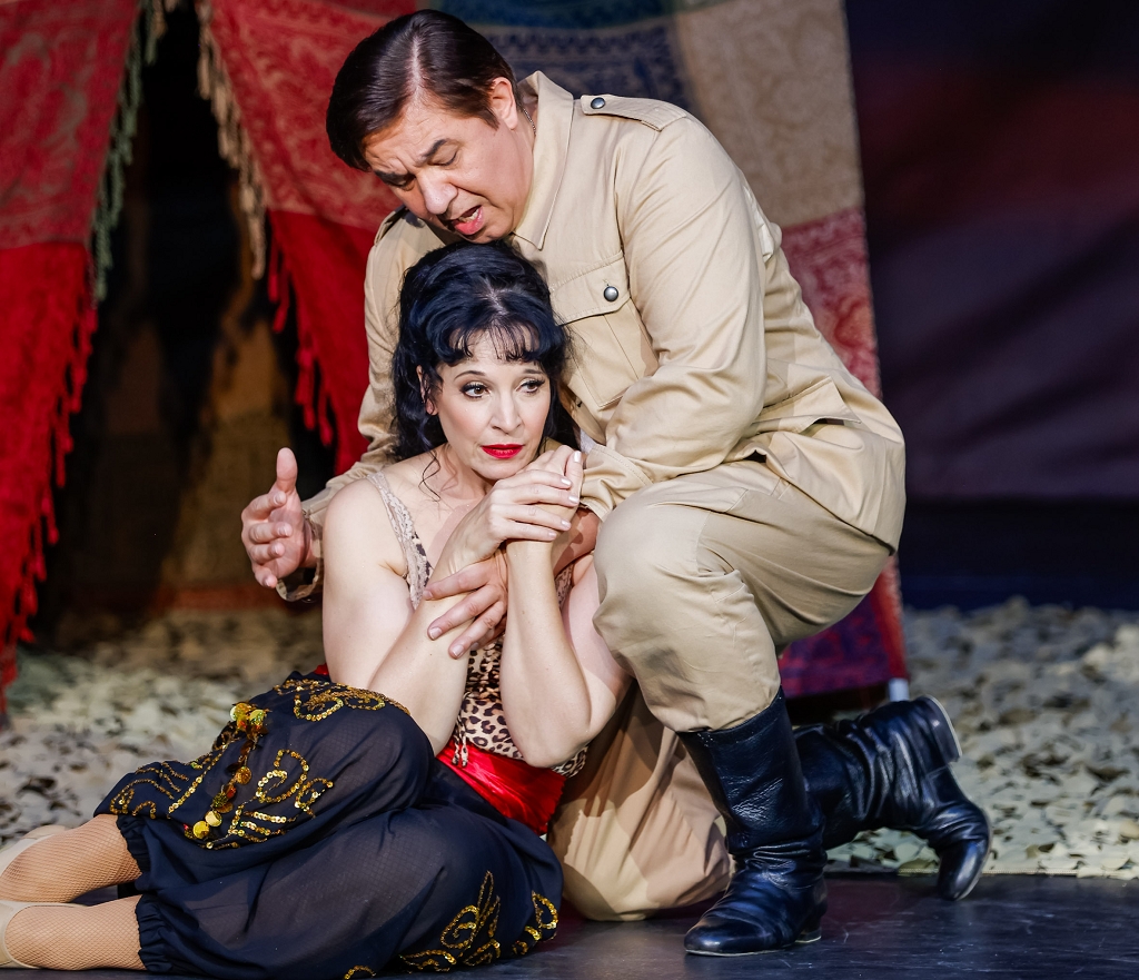 Kommen wir nun zum Salz in der Suppe jeder Operette, den Sängern. Mit ihnen steht und fällt eine Aufführung und am heutigen Abend steht alles und fällt nichts. Franz Lehár hatte seinem „Haustenor“ Richard Tauber die wunderschöne Arie „Du bist meine Sonne“ auf die Stimmbänder geschrieben. Doch nicht diese Arie wurde zum Hauptmotiv, sondern das schmetternde, verschwenderisch ausgestattete Eröffnungslied des Octavio „Freunde, das Leben ist lebenswert“. Gleich zu Beginn, noch nicht eingesungen, bedarf es hier eines besonderen Tenors, um dieses tolle Lied dem Publikum entsprechend zu präsentieren und Baden hat einen solch besonderen Tenor. Der in Moldawien geborene rumänische Tenor Iurie Ciobano schmettert diese Bravourarie in das Publikum, als wenn es kein Morgen mehr gäbe. Eindrucksvoll, stimmkräftig, glänzend bis in die höchsten Töne, vollmundig und einfach nur stimmschön, zieht er den Jubel des begeisterten Publikums gleich zu Beginn auf sich. Sein ganzer Octavio ist eine mehr als vorzügliche Leistung. Weich, schmeichelnd, aber auch mit strahlenden Höhen und einem durchschlagenden metallisch glanzvollen Timbre, ist der Ausnahmetenor ausgestattet, den man immer wieder mehr als gerne hört, aber auch zuschaut, denn auch vom darstellerischen ist er von Jahr zu Jahr mehr herangereift und hat sich zu einem hervorragenden Darsteller entwickelt. Es ist einfach nur schön, ihm zuzuhören und zuzuschauen. Tosender Beifall für ihn.
