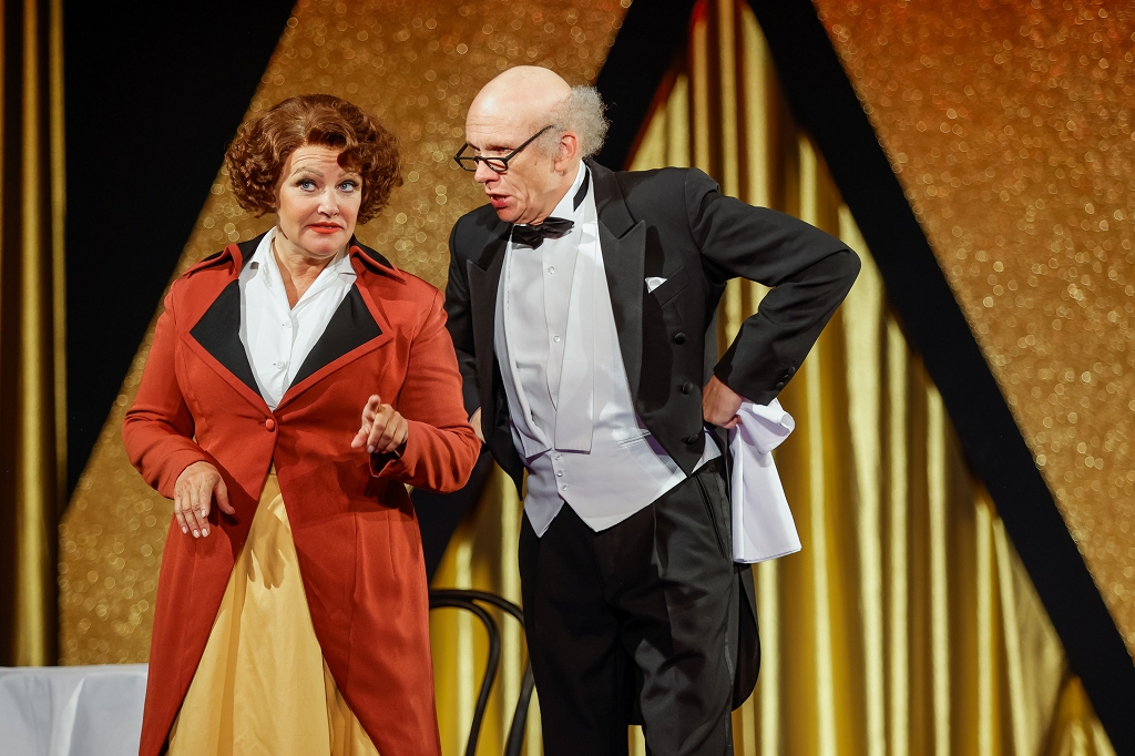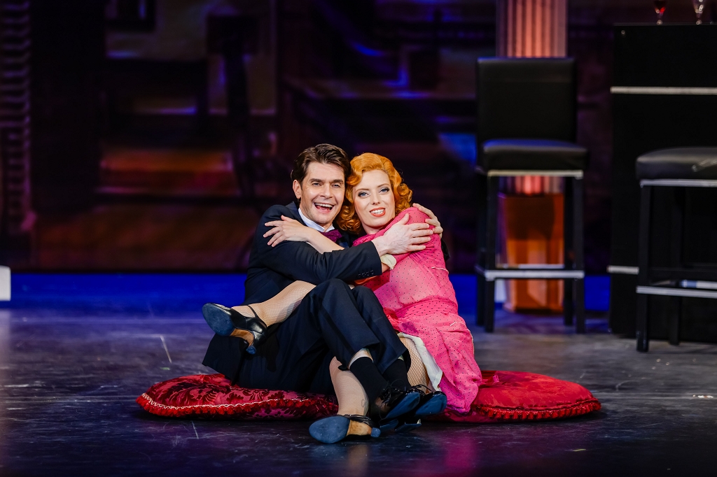 Elisabeth Schwarz, die in Salzburg geborene Sopranistin, ist auf der Bühne als Mabel wie ein kleiner Wirbelwind. Die kecke, humorvolle Künstlerin macht die amerikanische Wienerin zu einem wahren Hingucker. Mit frischem, klarem, feinem Sopran und einer unbändigen Spielfreude kann sie mehr als überzeugen und den Applaus des begeisterten Publikums auf sich ziehen. Es macht einfach nur Laune ihr zuzuhören, aber auch zuzusehen. Ein richtiges Energiebündel. Ihr Toni wird von dem Düsseldorfer Tenorbuffo Ricardo Frenzel Baudisch, gespielt und gesungen. Er ist aus Baden fast nicht wegzudenken und stellt erneut, wie so oft, einen ausgesprochenen Pluspunkt und Farbtupfer in der Aufführung dar. Sein schöner, weicher, klarer Spieltenor wird von ihm mehr als rollendeckend eingesetzt. Er kann auch darstellerisch aus dem Vollen schöpfen und sein natürliches, überzeugendes Spiel macht einfach Freude. Dass er zusammen mit seiner Mabel das Publikum so richtig in Laune bringen kann, brauche ich sicher nicht extra zu erwähnen. An den beiden merkt man, dass das Buffopaar nicht so nebenbei dabei ist, sondern mitten im Geschehen agiert und es voranbringt,