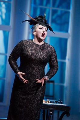 Dass dies nur bedingt gelingt, mag auch am unsensiblen und fast groben Dirigat von Hartmut Keil liegen, der die Aufführung an Stelle von GMD Josep Caballé-Domenech, der das Werk einstudiert hat, leitet. Der junge Dirigent erfeut sich offenbar dermaßen an den klanggewaltigen Passagen, die das Werk zweifelsohne hat, dass er im Wesentlichen lediglich zwischen verschiedenen forte-Stufen differenziert, die Sänger da und dort übertönt, die Staatskapelle Halle über Gebühr anfeuert und so eine recht undifferenzierte, sängerfeindliche Version der an sich facettenreichen Partitur präsentiert. Dabei hat sich Regisseur Ulrich Peters für eine traditionelle Lesart des Werkes entschieden, zeigt das Theater im Theater mit Witz und imposantem Bühnenbild von Christian Floeren. Der durfte sich überdies in der Schneiderei eine wahre Materialschlacht liefern und präsentiert Sängerinnen und Sänger in prachtvollen, mit Federn, Pailletten und Goldlamé wunderbar ausstaffierten Roben, schmucken Uniformen und opulentem Kopfschmuck. Da macht das Zusehen richtig Spaß, die Szenerie drängt aber dennoch nicht in den Fordergrund und bietet so den passenden Rahmen, die Protagonisten singen und spielen zu lassen.