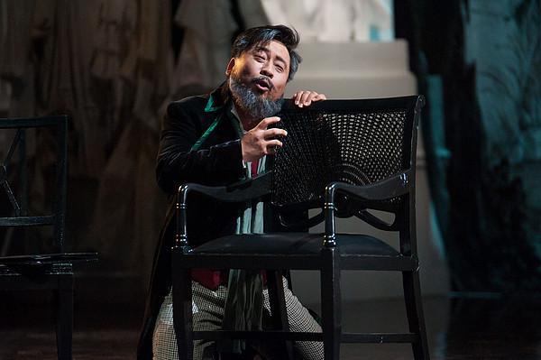 Romelia Lichtenstein ist mit Sicherheit eine große Künstlerin, eine wunderbare Sängerin und überzeugende Darstellerin obendrein. Gestern allerdings hatte ihre Mittellage einen gewissen Hang zum Tremolo, klang wenig klar, die Höhe war nicht ohne Schärfe. So konnte sie in der Titelrolle am Ende leider nur im letzten Akt überzeugen, in dem ihr hinreißende Pianissimo-Bögen gelangen und sie in einer herzergreifenden Sterbeszene auch stimmlich anrühren konnte. Darstellerisch aber bewältigte sie die Ansprüche, die die Partie stellt, mit Bravour. Bruno Ribeiros Maurizio hingegen ist – von ein paar seltsamerweise in Kopfstimme genommenen Tönen im letzten Akt – stimmlich nahezu perfekt.