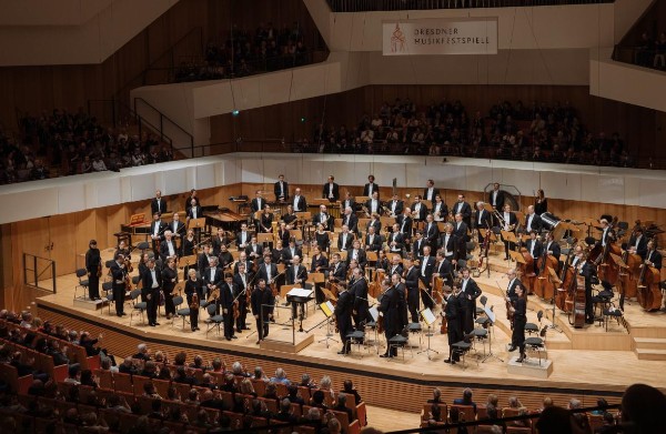 Dresden: Die Dresdner Philharmonie, drei Cellisten und Maciej Tworek spielen Penderecki
