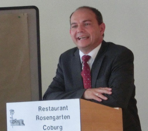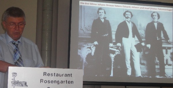 Nach einem Grußwort von Bürgermeister Norbert Tessmer referiert Oberbürgermeister Knut Kreuch aus Gotha über „Gotha-Coburg: Zwei Städte im Dreivierteltakt“. Er macht dies humorvoll, spannend und fesselt damit seine Zuhörer, die ihm begeistert applaudieren. Begeisterter Applaus auch für den zweiten Referenten. Der ehemalige Vorsitzende der „Deutschen Johann Strauss Gesellschaft“, Prof. Dr. Norbert Linke aus Borken, gibt einen Abriss über „Die Anfänge der Walzerproduktion in Wien“.
