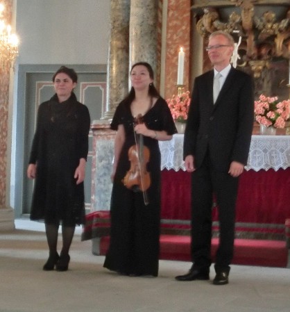 Unter dem Titel „Hochzeitserinnerungen“ agieren KMD Peter Stenglein an der Orgel und als musikalischer Leiter mit Migumi Ikeda an der Violine und Melanie Alban an der Harfe. Reuters „Hochzeitsmarsch für Orgel“, Donizettis „Sonate g-Moll für Violine und Harfe“, Tourniers „Deux Préludes für Harfe“, Strauss´ „Hochzeits-Präludium op. 469 für Orgel, Violine und Harfe“, Glaunows „Méditation für Violine und Orgel“, Faurés „Berceuse op.16 für Violine und Harfe“ und Powells „Grand March Triumphant für Orgel“ werden vorzüglich dargeboten, der Beifall am Ende – in einer Kirche eher ungewöhnlich, hier aber zulässig und auch zugelassen – ist entsprechend euphorisch.
