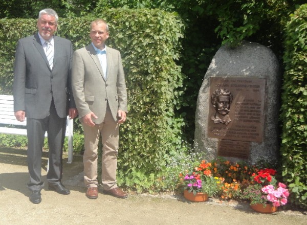 Nach der Mittagsrast begibt man sich zum Gedenkstein im Rosengarten. Das „Gedenken an den Walzerkönig Johann Strauss Sohn“ ist ein weiterer Programmpunkt, der mit dem „Schatz-Walzer“, gespielt vom Johann-Strauss-Quintett Coburg unter Jirí Preisinger beginnt. Bürgermeister Norbert Tessmer gibt anschließend einen Abriss über das Leben und Schaffen des Walzerkönigs in Coburg. Zwölf Jahre war Johann Strauss Bürger Coburgs, davon verbracht er aber nur ein viertel Jahr in Coburg. Er erinnert an die „Strauss-Woche“ 1987 und das Engagement der DJSG rund um die Aufstellung des Gedenksteines, zunächst am Johann-Strauss-Platz, jetzt im Rosengarten. Er verteidigt aber – erneut – die Sparzwänge. Dass nach seinen Worten das „Johann-Strauss-Quintett“ ganz hintersinnig – ausgerechnet – den „Banditen-Galopp“ intoniert, soll dem Vernehmen nach ausdrücklich auf Wunsch eines Mitgliedes unserer Gesellschaft hin geschehen sein.