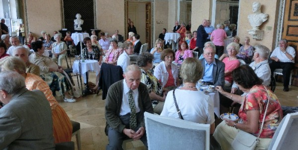Am Nachmittag des Sonntags findet man sich im Spiegelsaal des Landestheaters zu einem „Wiener Café Haus Treff“. Man erwartet echte Wiener Atmosphäre bei Kaffee und Kuchen und musikalischer Unterhaltung mit dem Café-Haus Ensemble der Philharmonie des Landestheaters Coburg. Und man hat nicht zu viel erwartet. Vielleicht ist es nicht die „Wiener Café-Haus-Atmosphäre“, denn Selbstbedienung einerseits und viel zu wenig Sitzmöglichkeiten gehören nicht dazu: Aber wer hätte denn auch gedacht, dass zu diesem Treff weit über 100 Gäste kommen? Und dennoch: Schnell füllt sich der Spiegelsaal, ungezwungene Gespräche, untermalt von eben die „Café-Haus-Atmosphäre“ betonende Musik, hervorragend dargeboten: Eine unglaubliche Mischung trotzdem, von leiser Zusammengehörigkeit und von bezaubernder Musik-Präsentation im Salon-Stil. So etwas sollte unbedingt wiederholt werden – dies war der Tenor vieler Besucher.