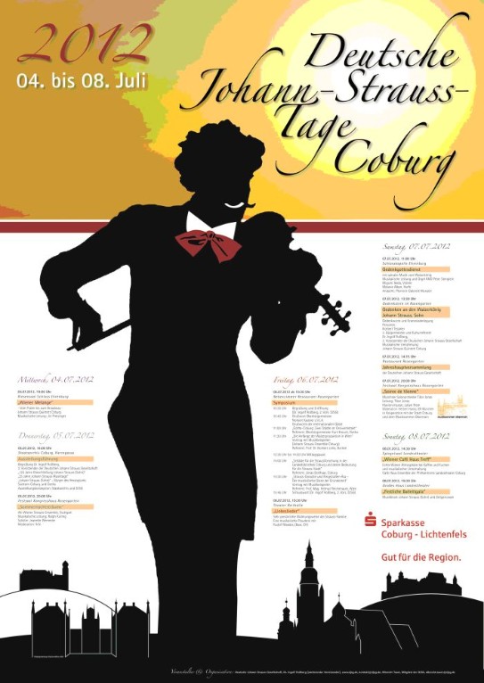 Die Deutsche Johann Strauss Gesellschaft wagte das eigentlich unmögliche – und hat gesiegt. Die Johann-Strauss-Tage in Coburg (die zehnten seit Beginn dieser Veranstaltungen und ihr 25-jähriges Jubiläum) vom 04. bis zum 08. Juli 2012, waren aus unserer Sicht ein voller Erfolg. Der folgende Bericht soll ein kurzer Streifzug über die Tage in Coburg sein und die Ereignisse Revue passieren lassen.