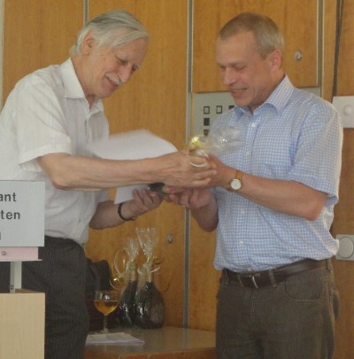 Und dann kommt Prof. Mag. Helmut Reichenauer aus Wien. Und er referiert in seiner unnachahmlich wienerisch-charmanten Art über die „Strauss-Dynastie und Ringstraßen-Ära – Der musikalische Glanz der Gründerzeit“. Und auch bei seinem hochinteressanten und leicht verständlichen Vortrag vergeht die Zeit wie im Flug und man schaut verwundert auf die Uhr und fragt sich, wie es sein kann, dass fast 1 ½ Stunden so schnell vorbei gehen können. Für alle Referenten donnernder Applaus und der Dank aller Anwesenden, den Ingolf Roßberg mit einem kleinen Geschenk zum öffentlich gezeigten Ausdruck bringt. So machen Symposien Spaß und so kann man die Mitglieder der Gesellschaft und die Gäste begeistern.