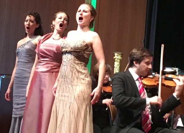 Man begann mit der Ouvertüre zu „Der Zigeunerbaron“, einem der Meisterwerke von Johann Strauss Sohn, begann vorsichtig zurückhaltend um dann immer stürmischer den herrlichen Walzer musikalisch auszukosten und riss das Publikum bereits von Anfang an mit. Präzise und schwungvoll, so kann man das Dirigat bezeichnen. Die Sopranistin Julia Klein sang dann die Arie der Rosalinde „Klänge der Heimat“ aus dem „Die Fledermaus“. Und sie tat dies mit klarem höhensicherem Sopran, der aufstrahlte und in den Höhen fein perlte und auch mit Herzblut von ihr dargeboten wurde. Viel Beifall für eine tolle Leistung. Dann brillierte wieder das Orchester mit dem Csárdás aus „Ritter Pásmán“, welcher flott und schwungvoll dargeboten wird. Mit Ana Cvetkovic-Stojnic stellte sich die zweite Sopranistin des Konzerts vor. Mit geläufiger Gurgel, blitzend, wie gestochen dargebotenen Koloraturen bringt sie mit dem „Frühlingsstimmenwalzer“ einen Hauch von Frühling in den nüchternen Saal. Das Orchester beendet dann den ersten Teil mit den „Rosen aus dem Süden“, welche flockig und zart, aber auch drängend und berauschend dargeboten werden. Heute ist nicht der kammermusikalische Strauss, sondern der feurige, durch das große Orchester beseelte Strauss zu hören.