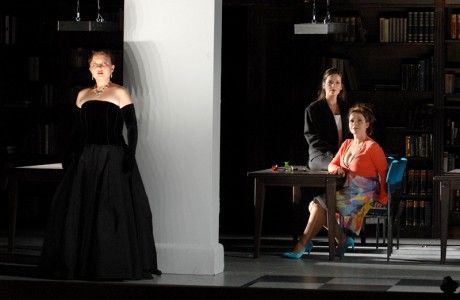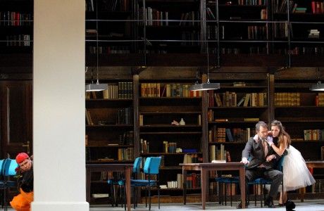 Man erwartet eine opulente Ausstattungsoper. Ägypten in einem archaischen Zeitalter. Doch Christof Loy versetzt die Szenerie in eine Bibliothek (zum Glück nicht in die Zaubererschule Hogwarts), lässt ein verzanktes Ehepaar (sehr amüsant und mit viel Wortwitz: Götz Argus und Verena Buss) das Märchen von der Zauberflöte und damit ihre eigene Lebens- und Liebesgeschichte erzählen. Kann man so machen und an sich ein interessanter Ansatz. Aber wo bleiben die phantasievollen Szenerien, die himmlischen Mächte der Sonne und Finsternis, die wilden Tiere und burlesken Figuren wie Papageno und seine Papagena?