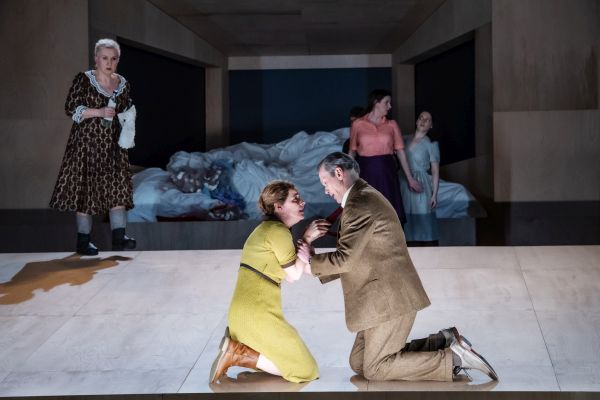 Auch die deutsche Oper am Rhein hatte in den letzten Wochen wie viele Theater im Lande mit den Auswirkungen der Corona-Pandemie zu kämpfen. So musste beispielsweise die Premiere von Jacques Offenbachs „Orpheus in der Unterwelt“ in Düsseldorf verschoben werden. Die Neuinszenierung von Leoš Janáčeks Oper „Katja Kabanova“ konnte dagegen am 05. März 2022 in Duisburg planmäßig stattfinden. Grundlage für diese Oper ist das Schauspiel „Das Gewitter“ von Alexander Nikolajewitsch Ostrowski aus dem Jahr 1859, welches von Janáček 1921 mit Fokus auf die Familie Kabanov komprimiert wurde. Für die Inszenierung konnte mit Tatjana Gürbaca eine derzeit vielgefragte Regisseurin gewonnen werden. Da sie die Handlung in einem eher allgemeinen und abstrakten Bühnenraum ansiedelt und der Ort der Handlung irgendwo im „russische Nirgendwo“, nicht sehr exakt oder gar folkloristisch dargestellt wird, ist die Inszenierung auch in der aktuellen politischen Lage unbedenklich. Zu Beginn prägen zwar noch schöne Bilder der Wolga das Gesamtbild, doch schnell konzentriert sich die Inszenierung auf die Personen und das Familiendrama im Hause Kabanov. Hierbei schafft der Bühnenraum von Henrik Ahr eine abstrakte Enge, bietet aber immerhin einige interessante Möglichkeiten, neue Räume und Perspektiven zu schaffen. Erwähnenswert ist beispielsweise das Gewitter am Beginn des 3. Aktes. Dennoch ist das Bühnenbild leider nicht mehr als ein Beiwerk.