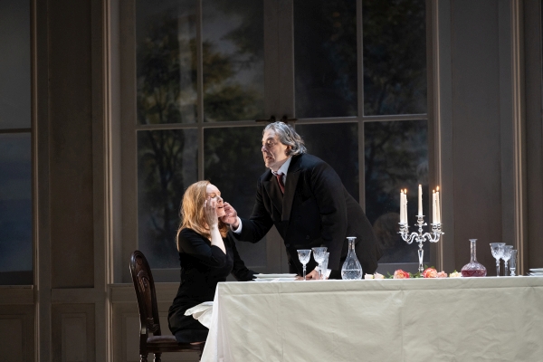 Die Freude an Schönheit und Üppigkeit des Rinascimento kennzeichnete die oben erwähnten Produktionen, Anklänge an das Vittoriale D’Annunzios am Gardasee manchmal erahnbar. Christoph Loy und sein Bühnenbildner Johannes Leiacke r verirren sich zwar nicht in Hässlichkeit und Dürftigkeit, verschonen den Zuschauer mit Videosequenzen und schriftlichen Bekundungen ihres politischen Standpunkts. Ihre Optik ist schön und elegant, aber so kalt, dass sie als Gegensatz zur leidenschaftlichen Handlung und Musik erfahren wird. Letztere findet in Carlo Rizzi einen kompetenten Anwalt, das Orchester der Deutschen Oper zeigt sich an diesem Abend in Hochform. Für die Deutsche Oper ist wieder wie schon bei der Heliane ein hoher kühler Raum mit wenig Mobiliar, aber Zimmerpalmen entstanden, ein Einheitsbühnenbild für Ravenna und Rimini, für Turm und Schlafgemach. Man sieht auf eine Gebirgslandschaft, die nichts mit Ravenna und nichts mit dem angeblich sichtbaren Meer zu tun hat. Die Kostüme von Klaus Bruns passen in das frühe 20. Jahrhundert, nur in der letzten Szene taucht noch einmal der Sänger aus dem ersten Akt als Statist in Renaissancegewandung auf. Ansonsten gibt es Schuluniformen oder Blümchenkleider für die Gespielinnen Francescas, für sie selbst durchgehend elegantes Schwarz.