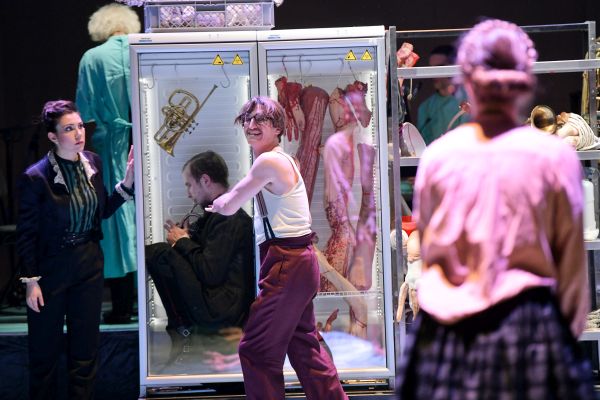 Ein Beispiel gelungener Teamarbeit bietet die Deutsche Oper Berlin: Nachdem auf der Hauptbühne bei Carmen die Flüchtlinge ausgeschlachtet wurden, verwendet man auf der Werkstattbühne in der ehemaligen Tischlerei ihre Organe zur Schaffung des Kunstmenschen oder besser Monsters, der Schöpfung des Gelehrten Frankenstein. Und so häufen sich denn auch auf der auf von drei Seiten von Zuschauerreihen umgebenen Bühne die blutigen Glieder und Eingeweide, und der Darstellung der Geschichte, wie sie Mary Shelley in ihrem Roman erzählt, dürfte nichts mehr im Wege stehen, werden doch auch im Programmheft zum Stück kluge und einleuchtende Gedanken geäußert.